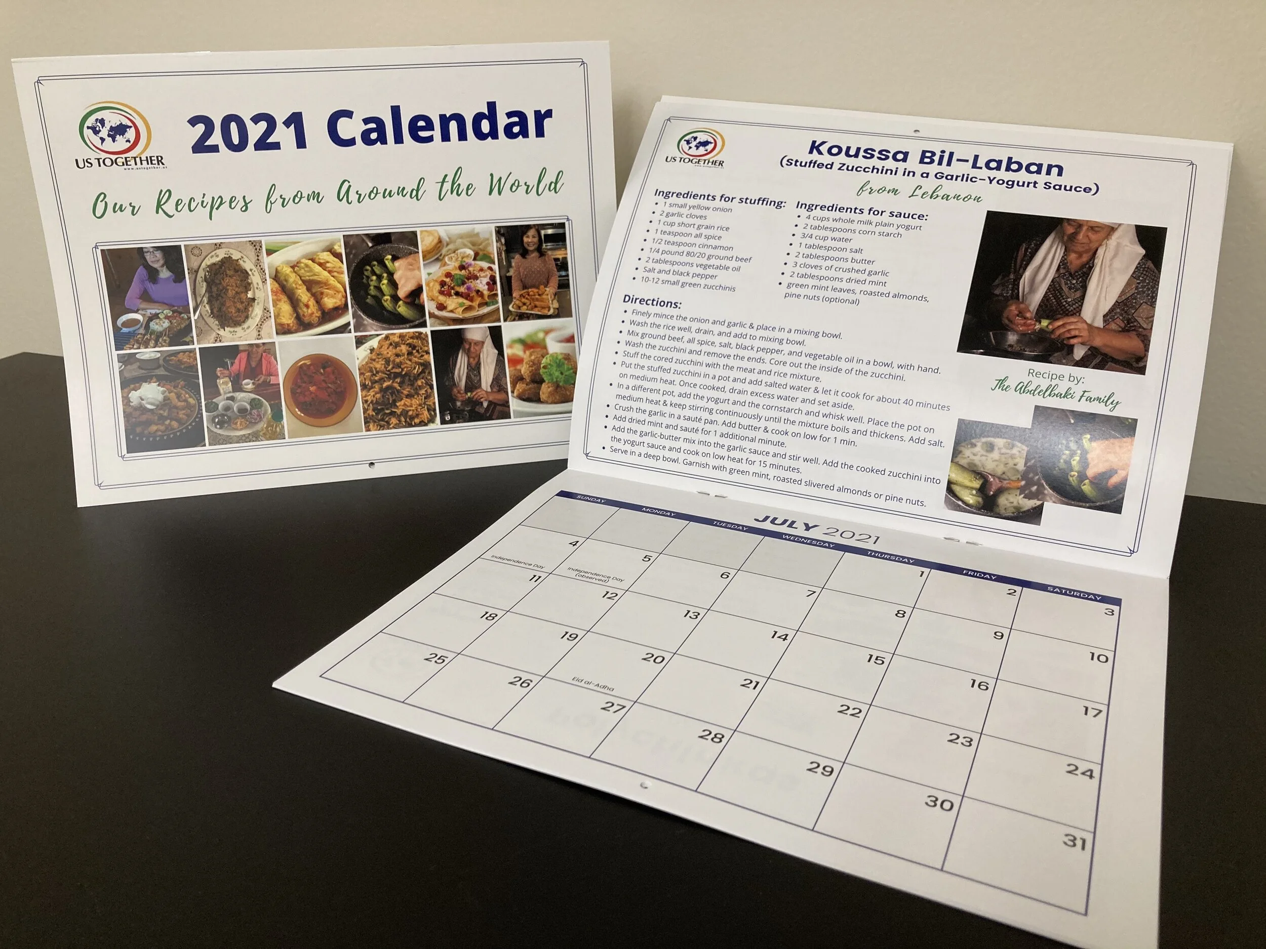 The calendar features ten more family recipes from all over the globe, such as Chicken Satay from Indonesia, Stuffed Zucchini from Lebanon, and Norwegian Meatballs with Gravy. To make this present even more special, we also marked some dates that are meaningful to us, including International Women’s Day, Juneteenth, World Refugee Day, and Indigenous Peoples' Day.