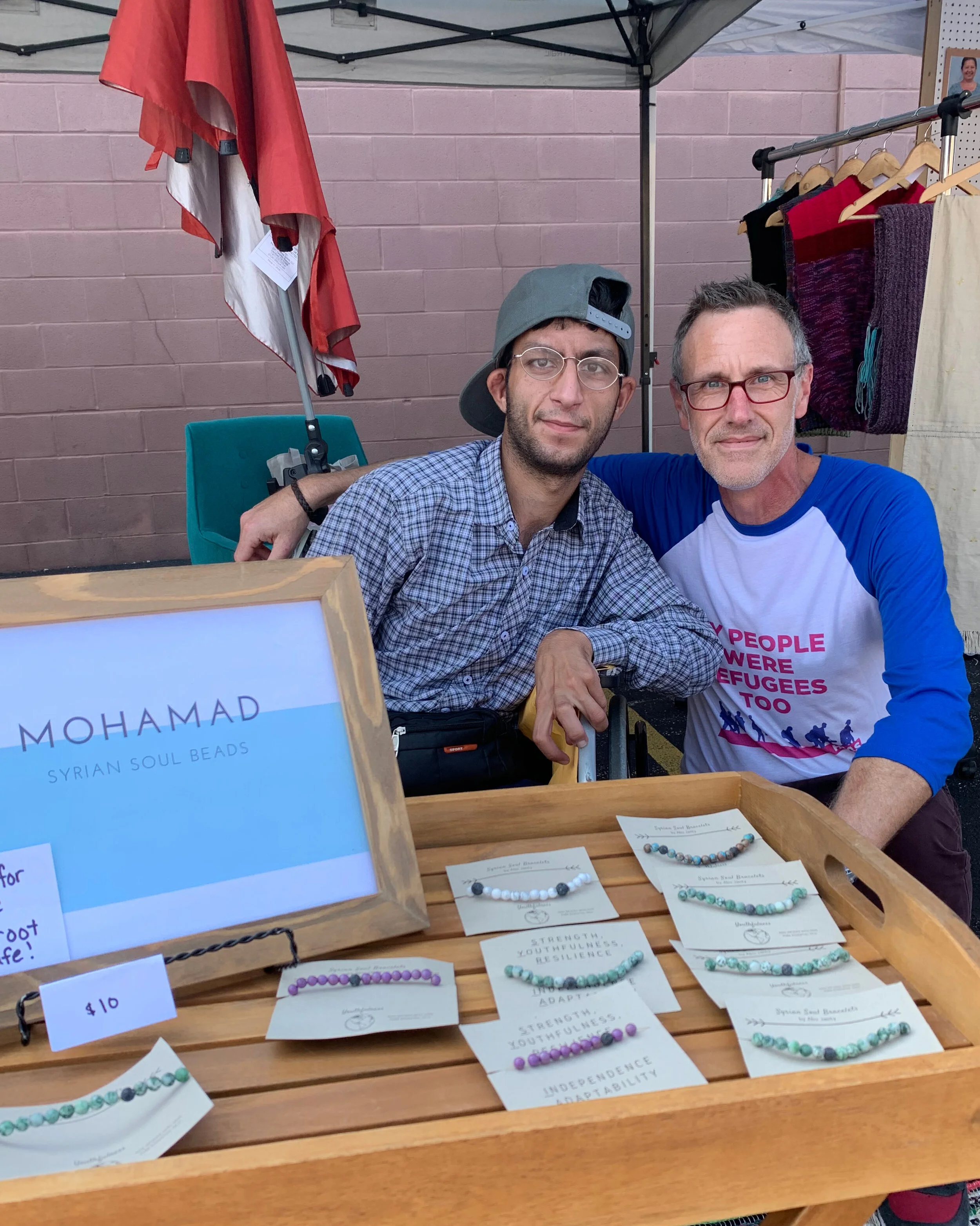 Mohamad loves to sell his bracelets at the various markets in the Cleveland area. He loves to meet new people and practice his English by chatting and getting to know his customers. He also finds joy in the happiness his beautiful bracelets bring his customers. Mohamad greatly enjoys the process of making his bracelets too. He loves to choose different colors and new beads that he thinks his customers will enjoy. Each of Mohamad's bracelets represents different qualities that are important to him.